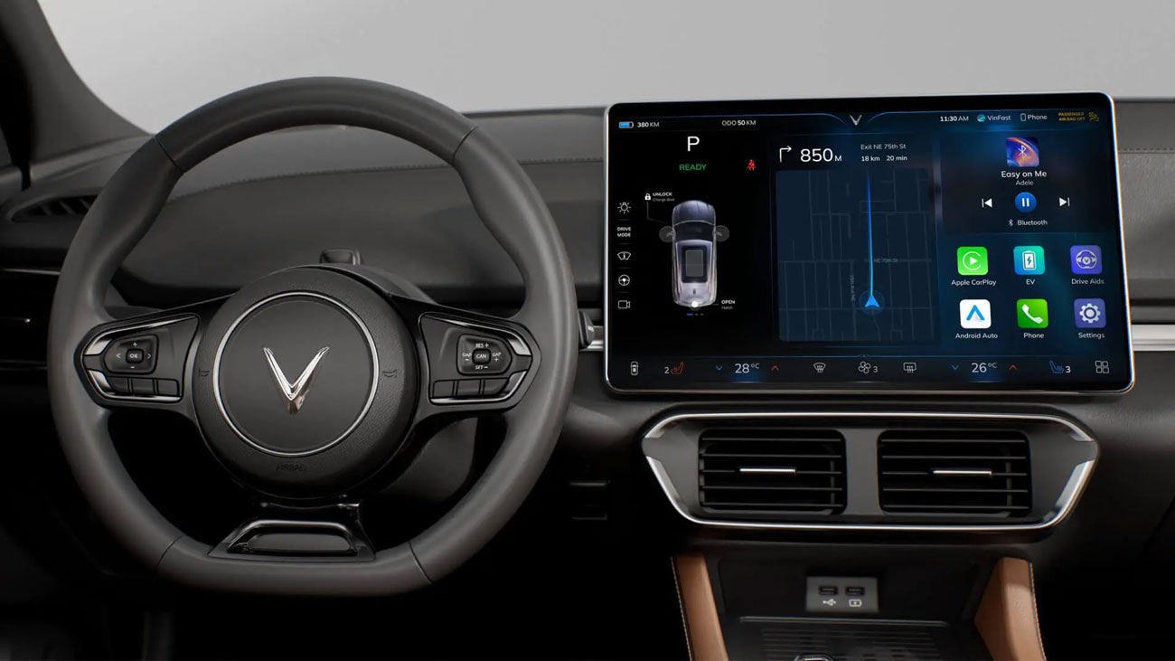 Vô lăng tối ưu cho mọi trải nghiệm: Không chỉ tích hợp khả năng sưởi, vô lăng của VF 8 còn có thể ghi nhớ và tự động điều chỉnh theo thói quen lái xe của bạn.